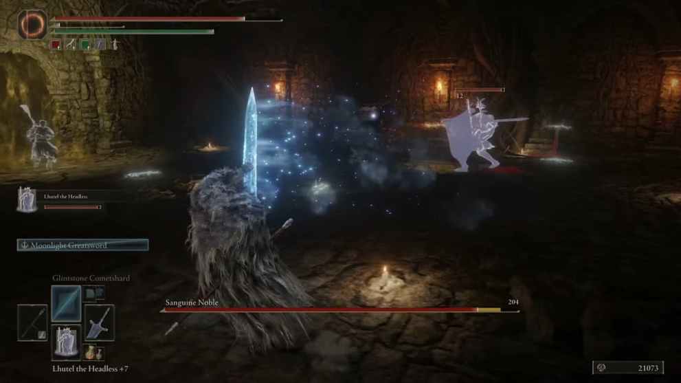 If you’re looking for a brutish tank of a summon that not only lasts for a long time on the battlefield but is genuinely useful in combat, hitting for big damage both up close and from range, then Lhutel the Headless is a great option. The best part about her is that she’s available fairly early on in your adventure across The Lands Between; her ashes are found at the end of Tombsward Catacombs in Weeping Peninsula after defeating the boss, Cemetery Shade.