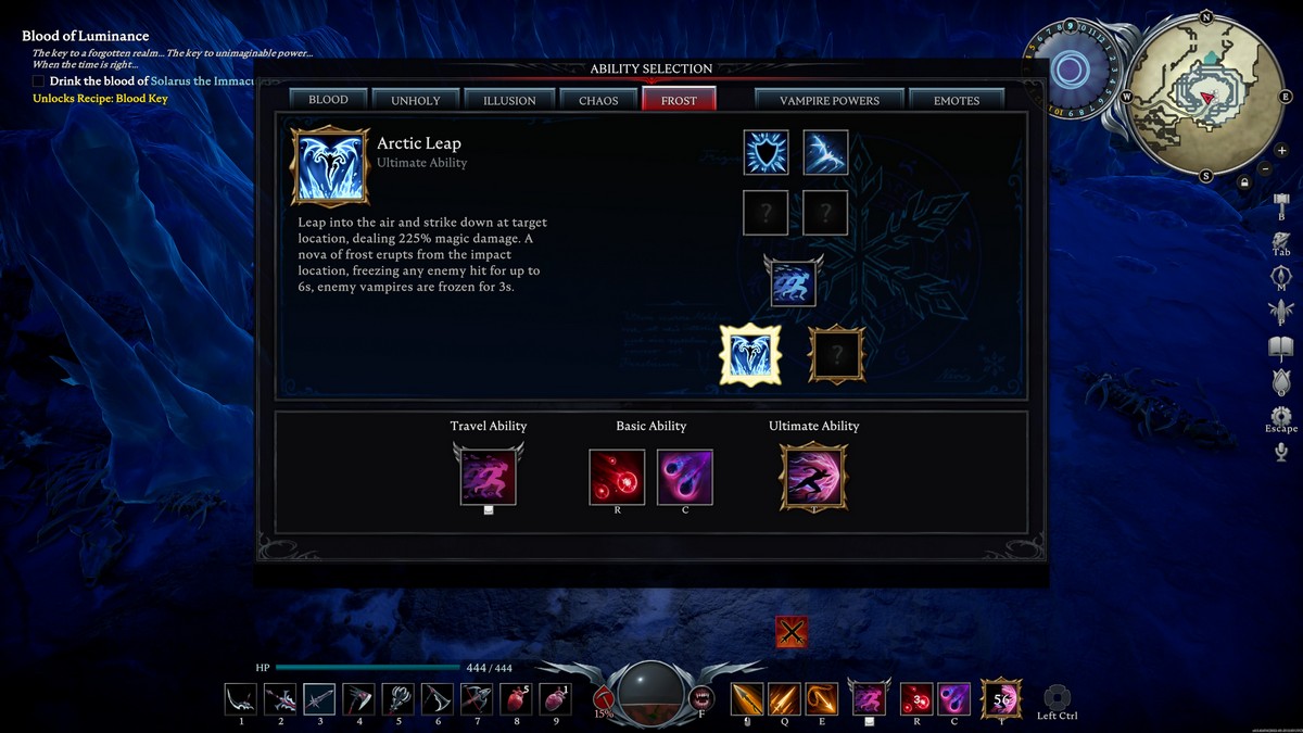 Take to the air and strike down with righteous fury with Arctic Leap, an Ultimate that deals 225% AoE magic damage. All nearby enemies will be frozen for at least 6 seconds, and other vampires will get immobilized for 3 seconds. Once everyone is stopped in their tracks, it gives you the opportunity to heal up or continue dealing damage.