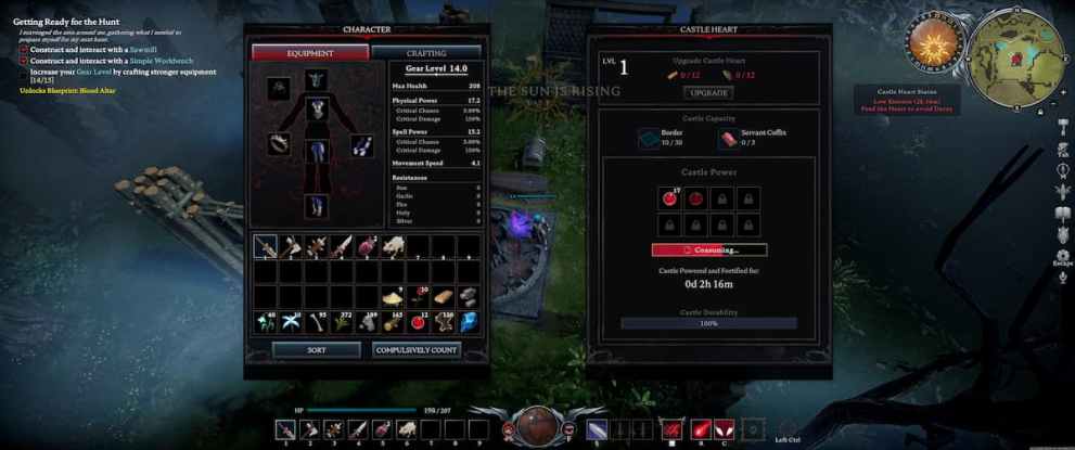 At the beginning of the game, you’ll be given a series of simple objectives to follow as you learn the various mechanics of V Rising. Eventually, you’ll be tasked with placing the Castle Heart somewhere on the ground to start building your base.