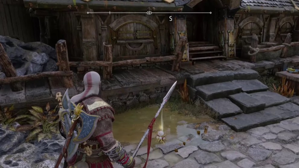 From the tavern, head forward into the Dwarven city and keep an eye out for an air vent on your right. Once you see it, launch the Draupnir Spear into it to make a point Kratos can cross a nearby gap with. Have Kratos cross the gap, and then the Flower should be directly in front of you.