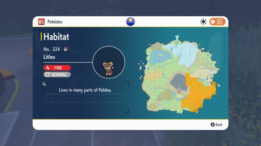 Luckily, Litleo is a relatively common Pokemon to stumble upon in the Paldea Region. As indicated on the map below, Litleo tends to live on the Southwestern side of the map, where its habitat is highlighted in yellow. Since this is quite a large area of the Paldea Region, here is a list of the specific areas Litleo is located, so that you can further narrow down your search: