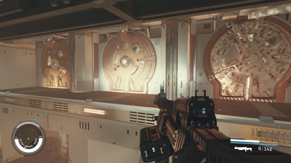 Once you’re on board, take note that the ship’s artificial gravity will turn off and on every couple of seconds. This will play a part as you get further through the ship, but loot to your heart’s content in the first couple of areas. You’ll encounter pirates further in.