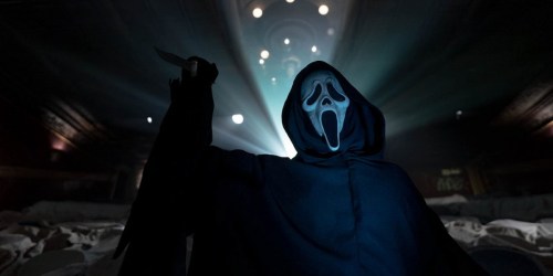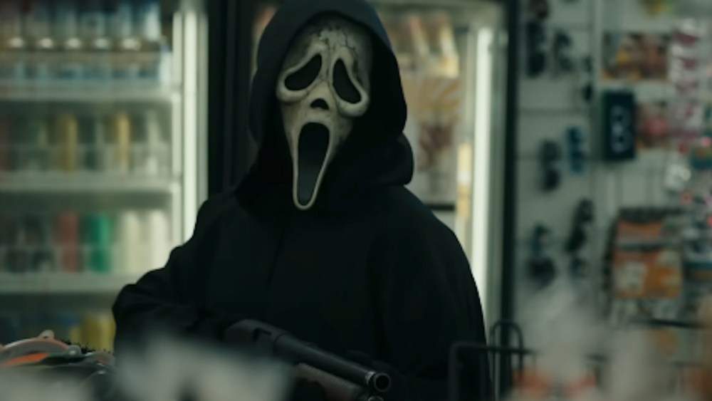 This scene is featured heavily in the trailers and is notable for being the first time in the franchise’s history that Ghostface has wielded a firearm. After finally tracking down the Carpenter sisters, he corners them in a bodega. Two civilians attempt to thwart him but both are mercilessly stabbed before the bodega owner attempts to shoot the killer dead with a shotgun. He misses his shot and is disarmed by Ghostface who retaliates with a bullet at point-blank range.
