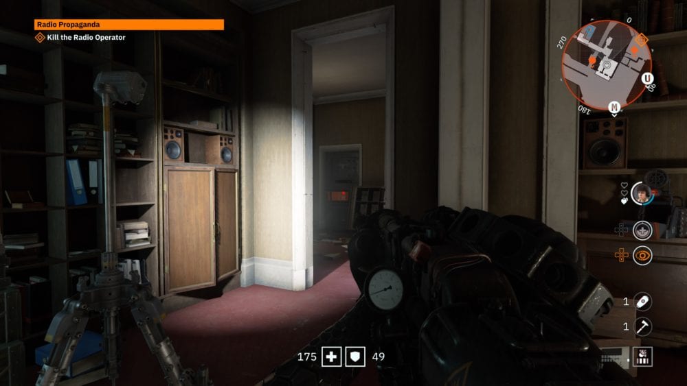 Then, head inside the room with the balcony, and you’ll see a closed metal door further into the apartment. That metal door can only be broken down by firing a round from the Dieselkraftwerk at it and detonating it.