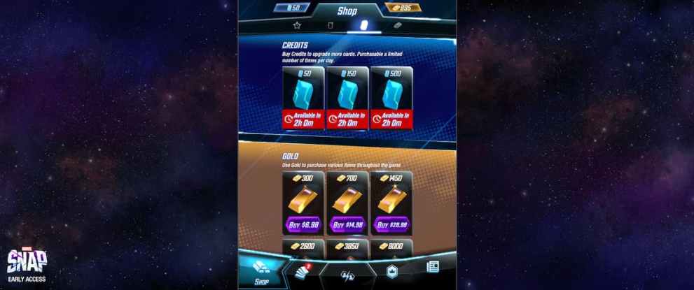 Alternatively, you can also purchase Gold with real money, and use Gold to purchase Credits. Do be aware that there is a Credit cap each day, so you won’t be able to just drop thousands of dollars on day one to complete your collection immediately.