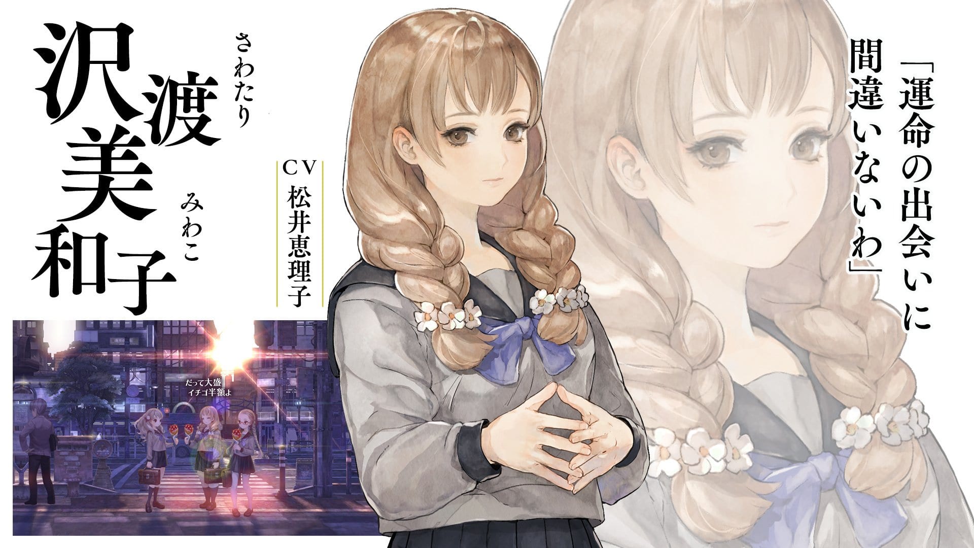 Miwako Sawatari is modest and gentle girl that often goes to have a snack with our heroines on the way back to school. She’s a bit self-conscious about being chubby.