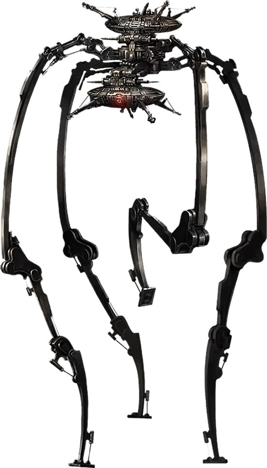 Last, but certainly not least, the HighQuad is a heavy mechanic kaiju over 100 meters tall. It’s equipped with an extremely powerful plasma cannon and can melt instantly the thick armor of a Machine Soldier with a direct hit.