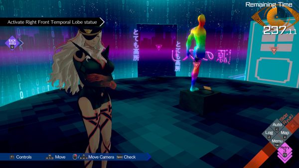During a Somnium, players can uncover new clues. Agents or “Psyncers” use Psync machine to enter the dreams of suspects and key witnesses. In the dream world, Mizuki’s AI-Ball Aiba or Ryuki’s AI-Ball Tama appear as women and assist their agents by conducting investigations on their behalf. The Psyncer can stay in the subject’s dream for only six minutes. The dream world’s structure is based on the subject’s personality and memories, and each world has its own rules. The object of a Somnium is to enter the deep consciousness of a subject, and unlock “Mental Locks” that hinder the investigation, all within the time limit.