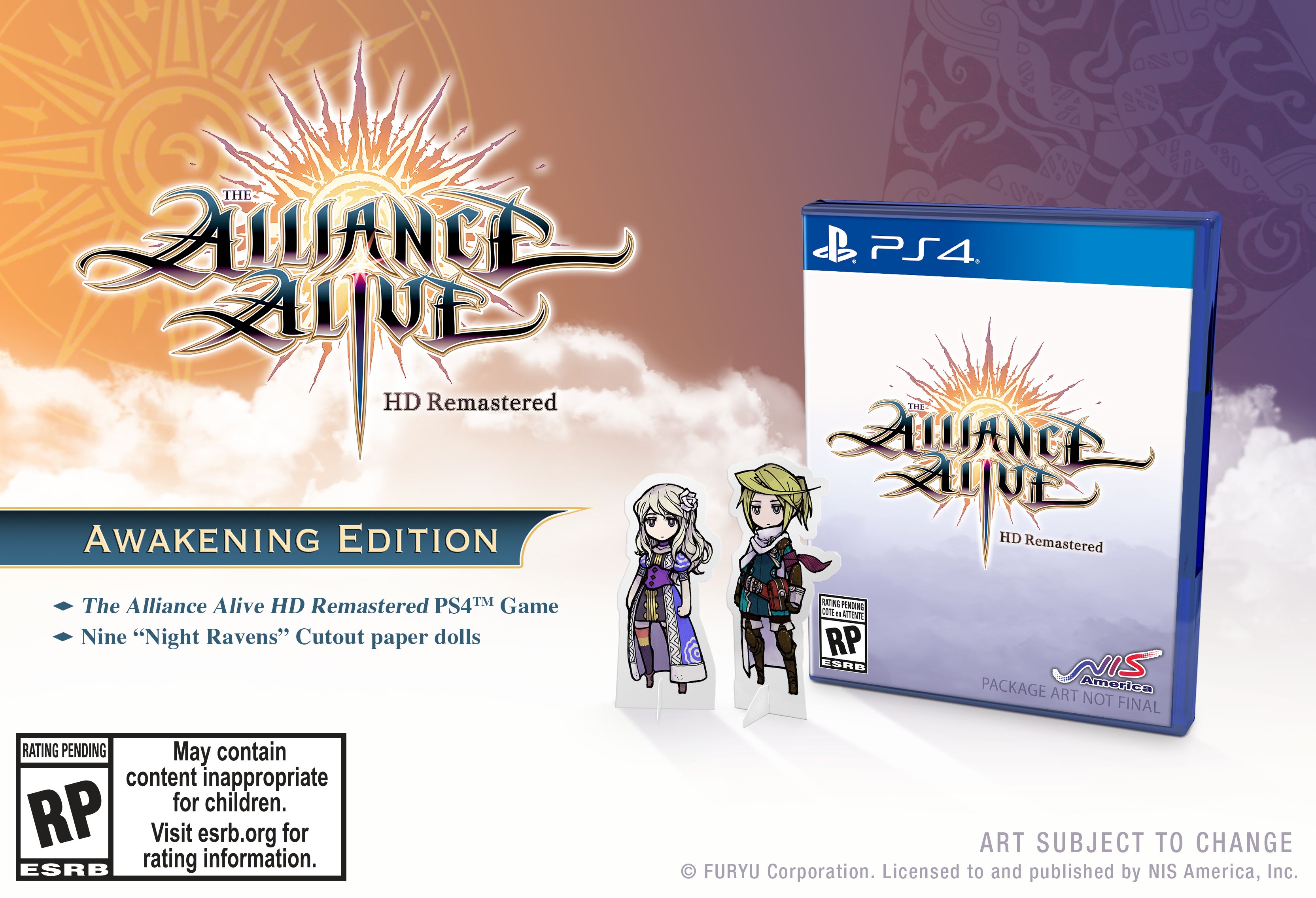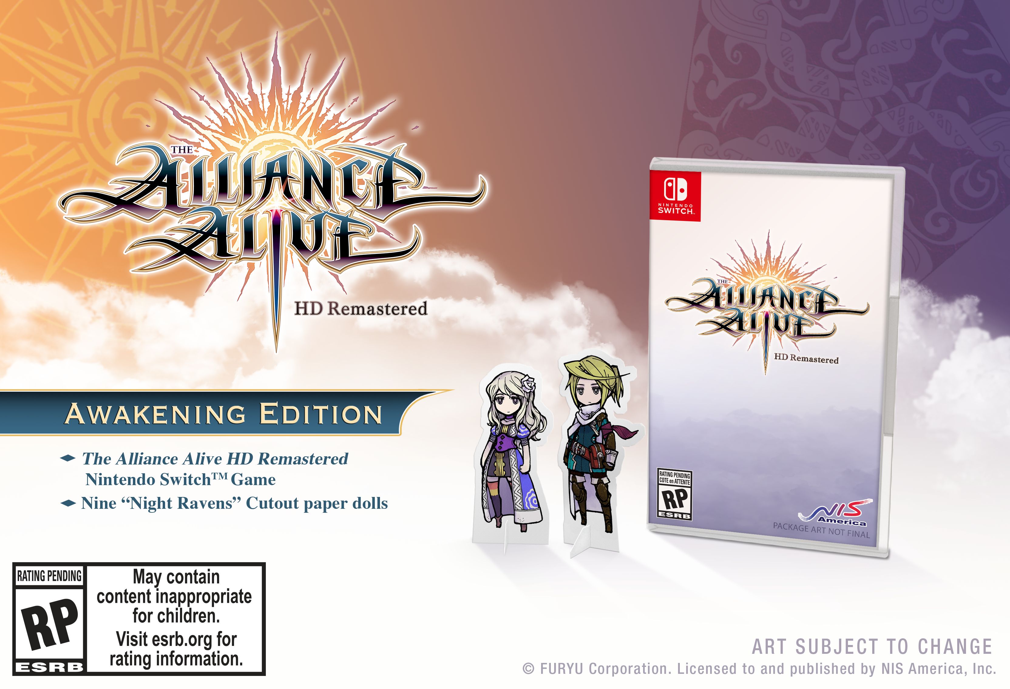 You can enjoy the announcement trailer of The Alliance Alive HD Remastered below, alongside a few screenshots, and a look at the Awakening Edition (which will be available for pre-order starting today at the NISA store), including nine “Night Ravens” cutout paper dolls.