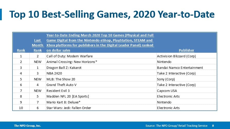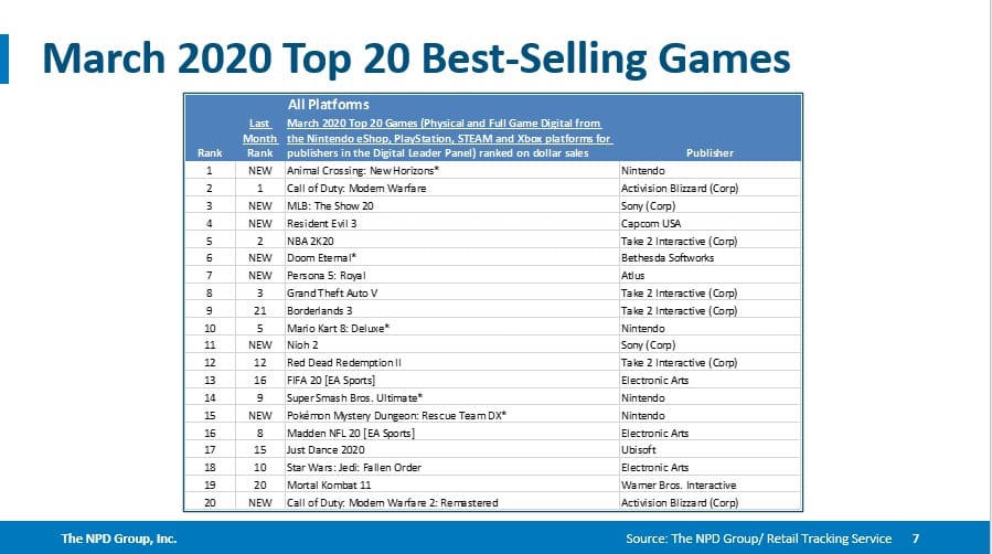 Animal Crossing: New Horizon is the best-selling game of the month, surprising basically no one. It also becomes the second best-selling game of the year behind Call of Duty: Modern Warfare.