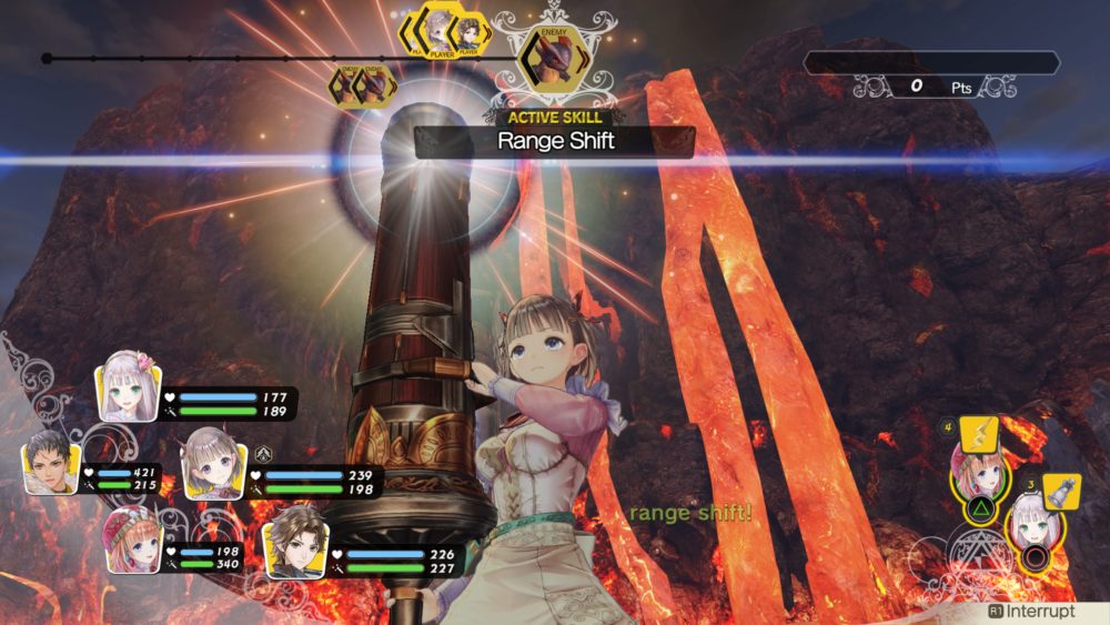 In Atelier Lulua: The Scion of Arland, alchemists are able to utilize the new Interrupt ability, offering the chance for them to perform a special Interrupt Skill and use a pre-equipped item, outside of their turn. Once the gauge is full from performing attacks, the skill can be triggered and the pre-equipped item will not be consumed when used – giving the attacking team the upper hand against powerful foes.”