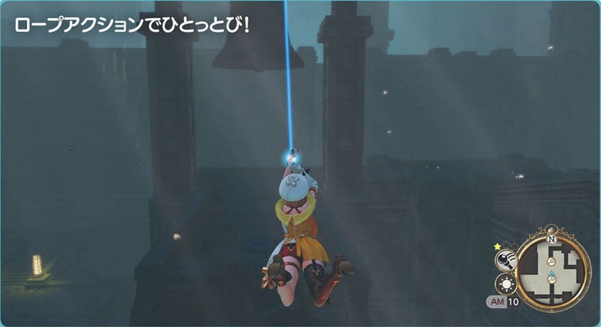 We then see two exploration tools. A bracelet lets Ryza swing over chasms, while another item called “Air Drop” lets her breathe underwater. Incidentally, her hair and clothes will appear wet after a swim.
