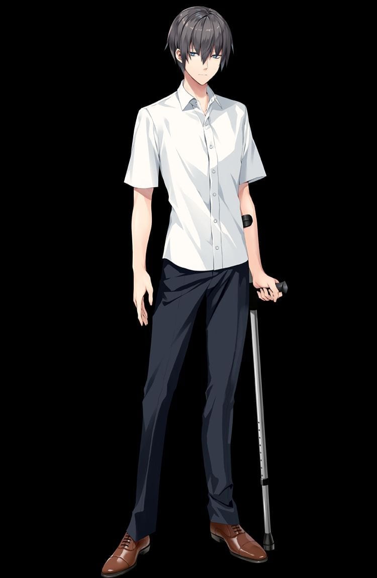 Three characters have been revealed. Natsuki is 17 years old. He used to go to an elite school in the city called the Academy. He lost his leg and his mother at the same time during an accident years before, and his post-traumatic stress disorder causes him to fall prey to seizures when he is in dark and quiet places.