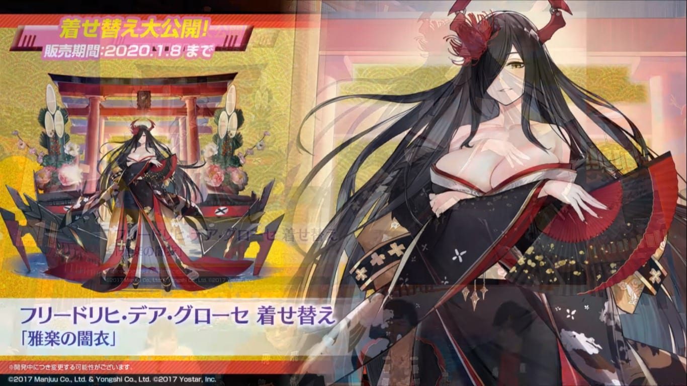 Next we take a look at beautiful New Year Skins for Ryuuhou, Noshiro, and Suruga, which will come with Live 2D animations.