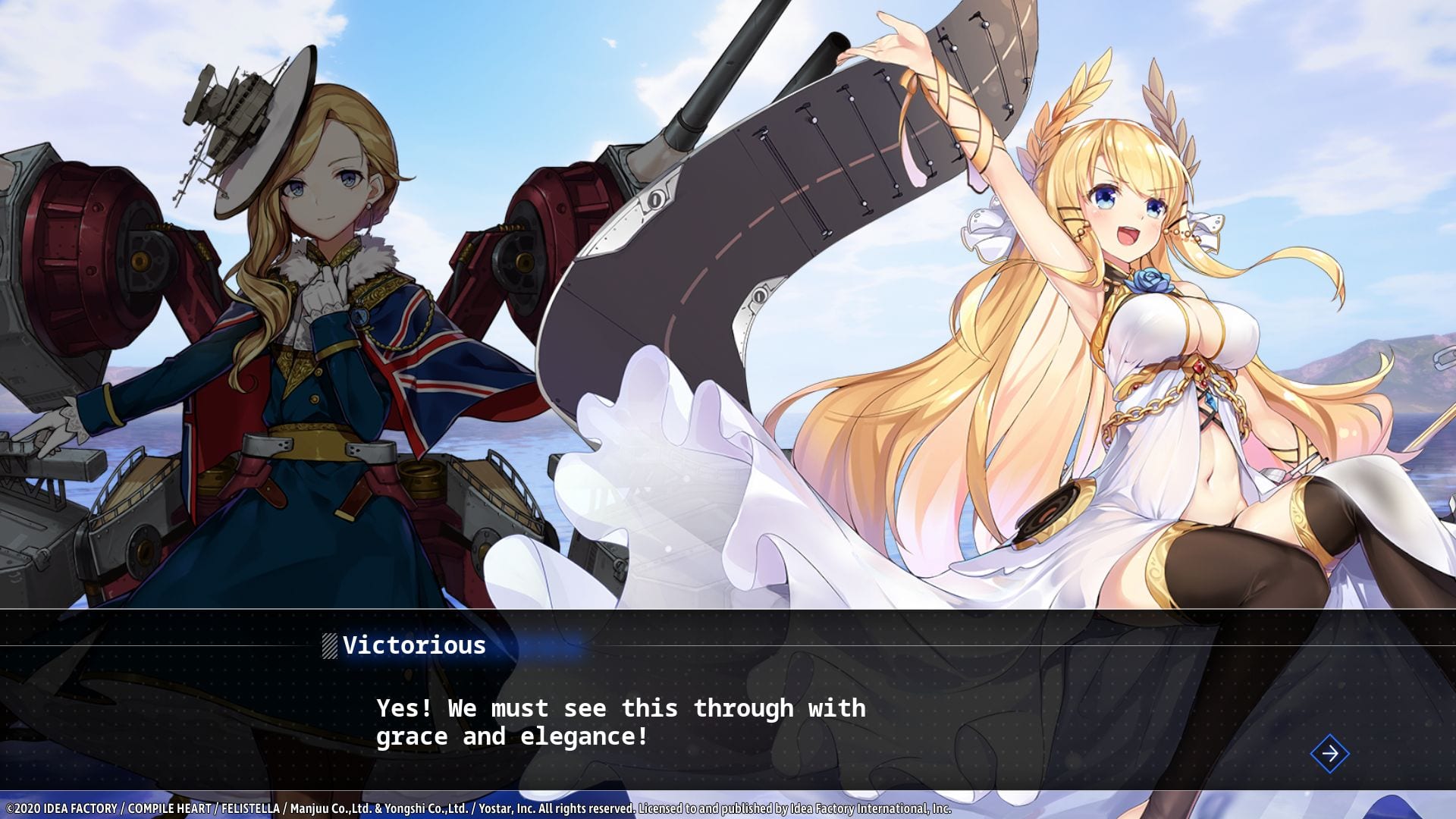 The second-in-command, Illustrious-class aircraft carrier. She loves all things beautiful and, above all, achieving victory. Unlike her older sister, Illustrious, she is quite bold and daring (with a touch of narcissism). She seriously believes that brute force is the fastest solution to everything, which causes a bit of a stir, even among her friends.
