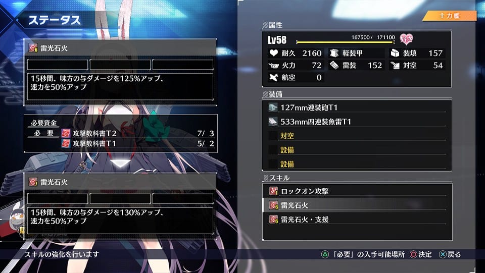 Each shipgirl has also skills, and there is a large variety of them. Unlike the original game, the effect of skills of the same type actually stacks, allowing you to achieve tremendous firepower or defense.