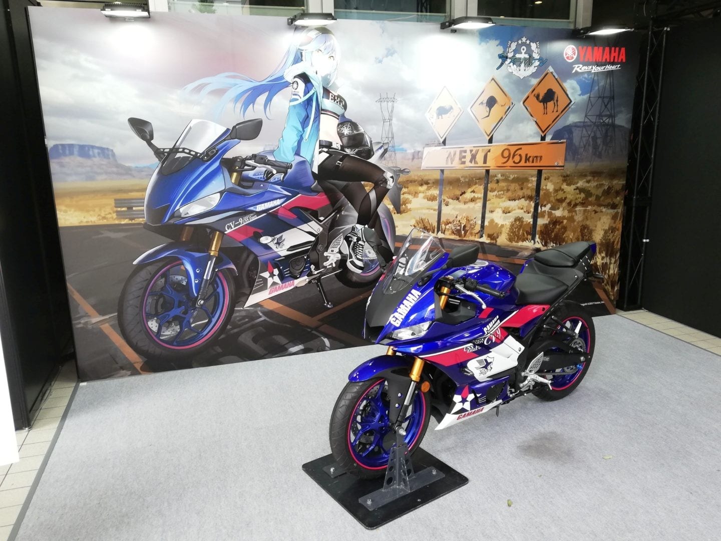 The skin is associated with a “Gamaha” bike that was actually showcased at the 2nd-anniversary event in Akihabara, Tokyo. You can soon expect a full report about that, but in the meanwhile, you can check out the skin below and the bike itself in an image at the bottom of the post.