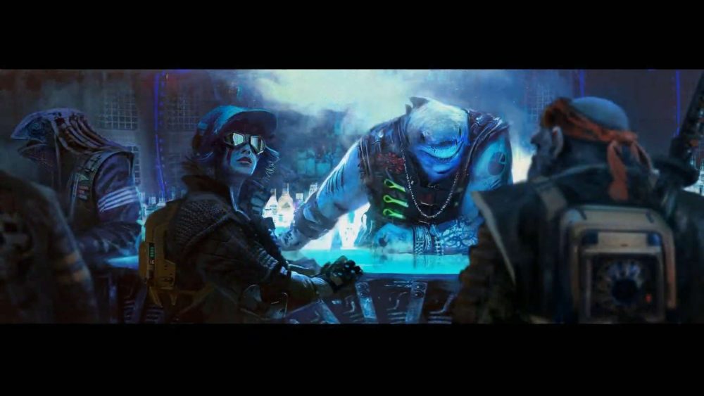 We then see a pirate ship flying in space and approaching the biggest pirate lair in the system, hidden in an asteroid field. Once the players reach that lair, they’re initiated into the pirate life by an ancient AI named Primera. She knows the truth about the system and she can tell fledging pirates everything they need to know.