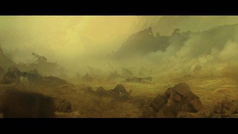 More artwork shows a corporate ship flying over Naraka, with giant rocky formations created by meteorite impacts. Miner slaves are air dropped with meteorites hitting all around them trying to pick up a mineral named Diwalite that is generated upon impact. It’s very volatile so it needs to be grabbed immediately or it disappears. The miners wear large gloves for limited protection, but they’re completely disposable and can be abandoned if they don’t meet their quota.
