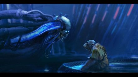 We get to see concept art of the laboratories where Chimera Corporation creates clones. Everyone in System 3 is a clone as there is no natural birth in the world. Scientists create hybrids by crossing human and animal DNA.