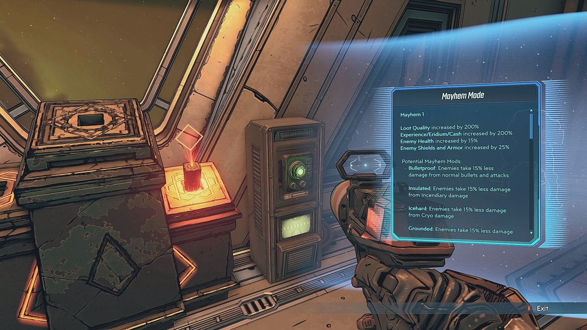You can pick between Mayhem level 1, 2, and 3. The modes provides a more difficult challenge. Monsters become more difficult, XP rewards are increased, and Stats on the enemies change.