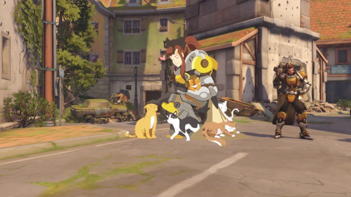 Moving on, Brigitte also brings her fair share of new sprays to Overwatch. The Support hero apparently loves cats since she has a fair share of them in her sprays. There’s also a heartwarming family photo of her, her mom, and Torbjorn in the mix. She even has a combo spray that can be paired with Reinhardt’s arm wrestling spray.
