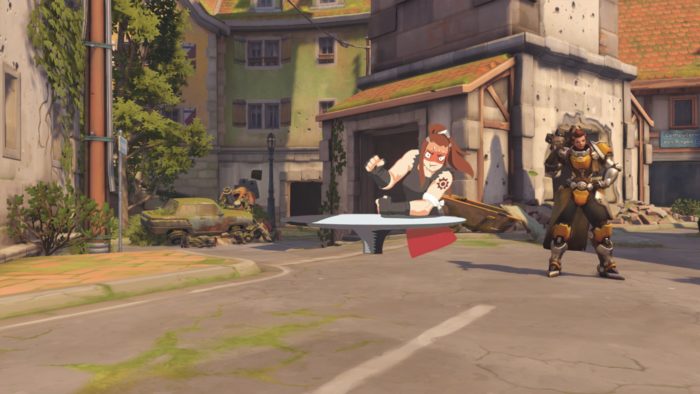 Meanwhile, she also has a slew of new victory poses and emotes. Like with all other heroes, Brigitte also has her own laughing emote. Other emotes include swinging her weapon around, fixing her “broken” shield, and the classic “bring it” taunt. Meanwhile, some of her victory poses include the hero leaning on her shield and raising her flail.