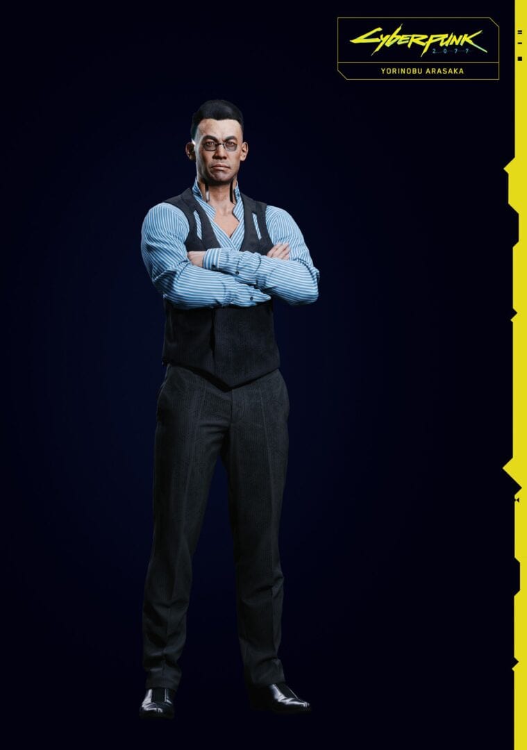 “Yorinobu, heir to the Arasaka empire, is Saburo Arasaka’s youngest and only surviving son. Yorinobu cut ties with his father after a heated argument. He sought destruction, but soon realized that the corporate giant’s power was impossible to defeat — at least from the outside.”