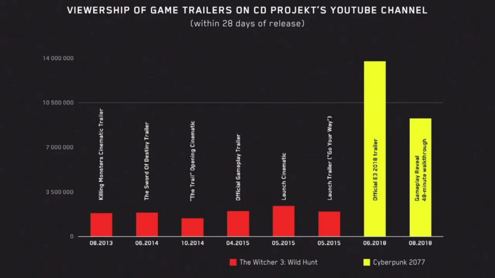 We hear from President Adam Kiciński that the reception of the game was very good and met the developer’s expectations. CD Projekt is “very much excited” by how players responded to the game. Below you can see some statistics of the views gathered by the E3 trailer and gameplay presentation revealed last summer.