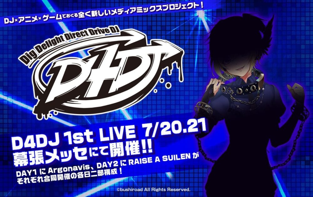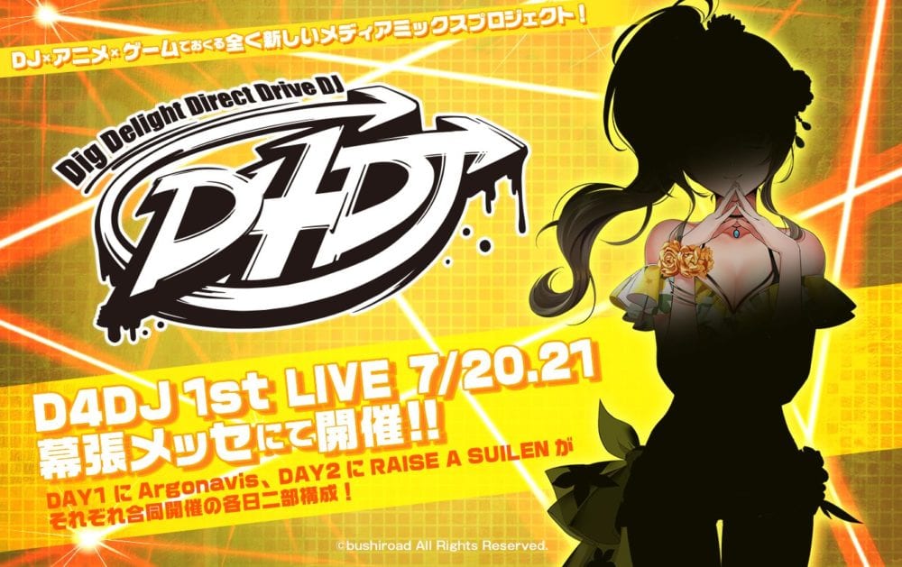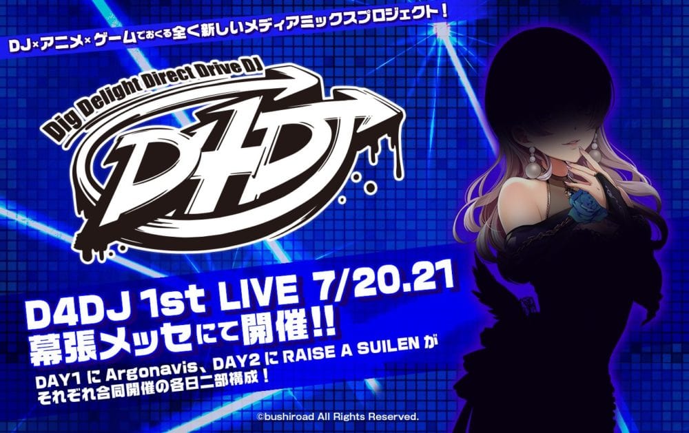 As mentioned above, D4DJ will be a cross-media franchise including video game, an anime series, and live concerts. The name stands for “Dig Delight Direct Drive DJ” and will be presented with a two-day live concert event with BanG Dream! bands RAISE A SUILEN and Argonavis on July 20 and July 21 at the Makuhari Messe venue in Chiba, near Tokyo (the same place where Tokyo Game Show is usually hosted).