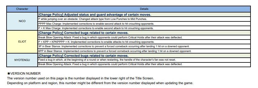 Adjustments have been made to the visuals, and tweaks have been made to various attacks.
