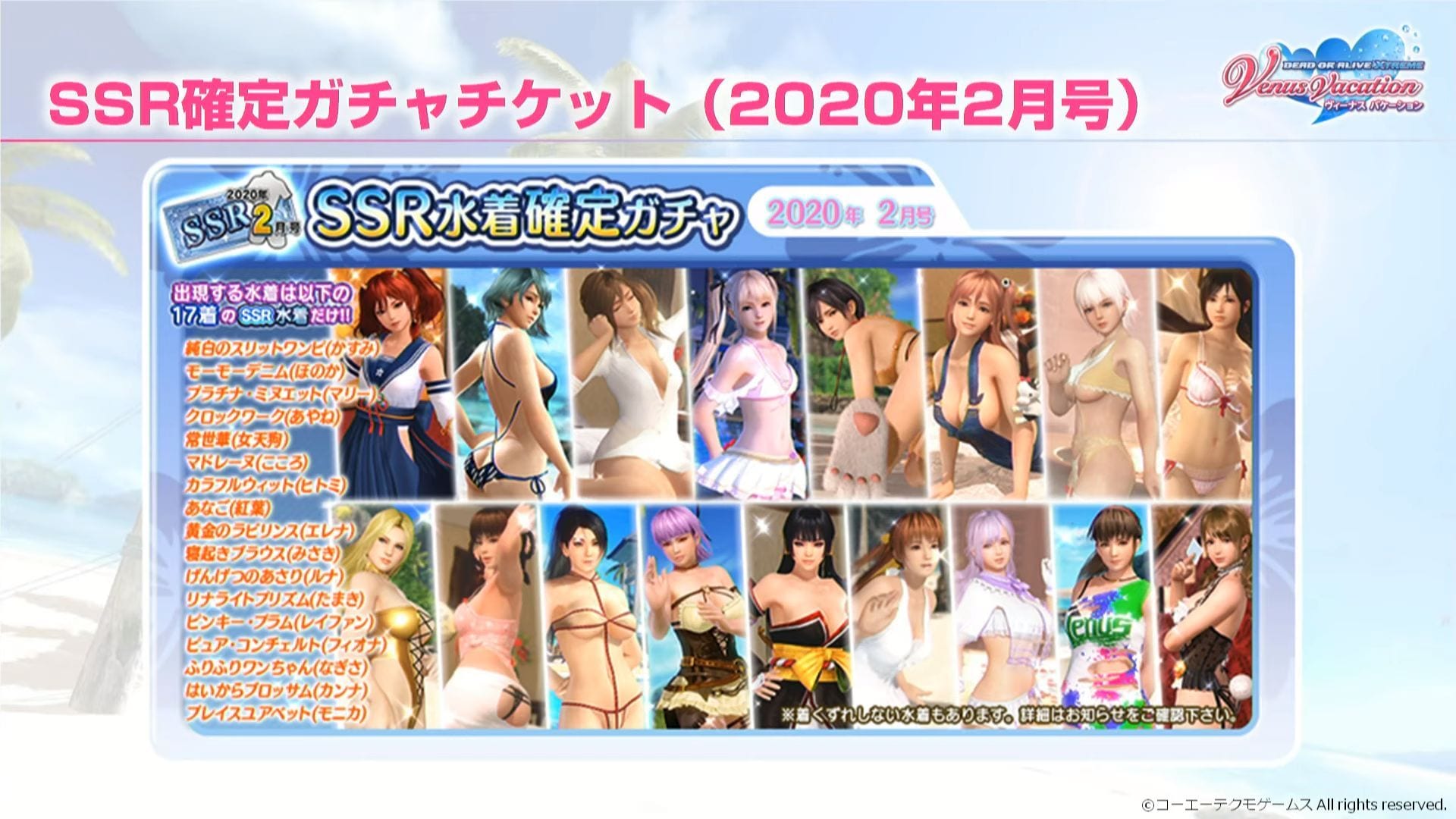 We are getting the usual monthly featured SSR ticket for February, one Venus SSR ticket, two February SSR ticket parts (you need 8 to make an additional ticket), and variosu consumables.