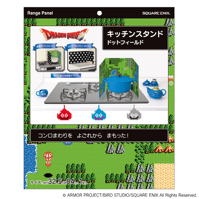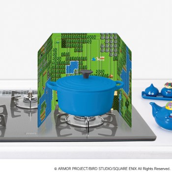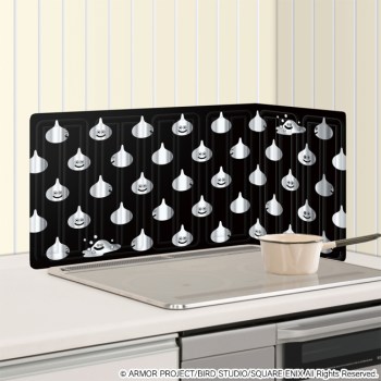 The rest is a themed screen with steel slimes on one side and a classic map on the other. Priced at 823 yen, it’s made of aluminum and it’s designed to protect the area around the stove from oil splashes and stains.