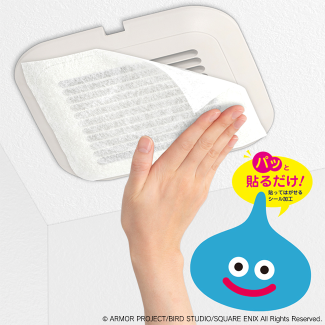 The slime-themed line of products includes two removable dust filters that you can attach to the ventilation fan grill, one measuring 15 cm and the other 30 cm. They cost respectively 548 and 658 yen.