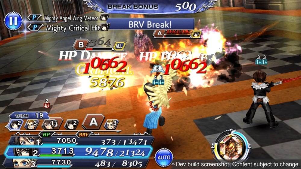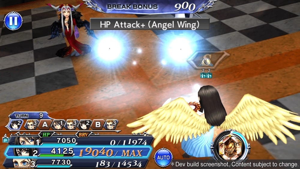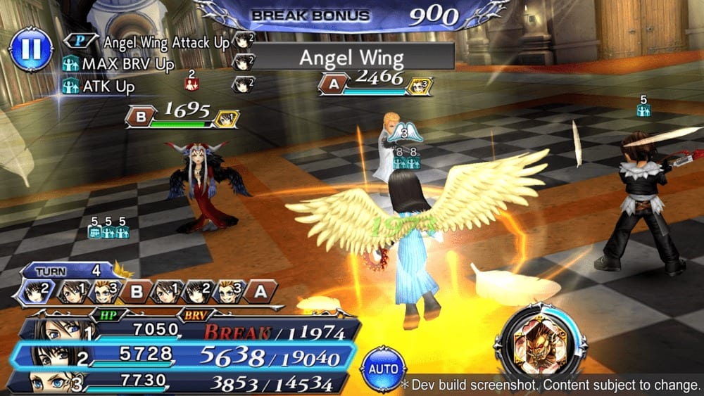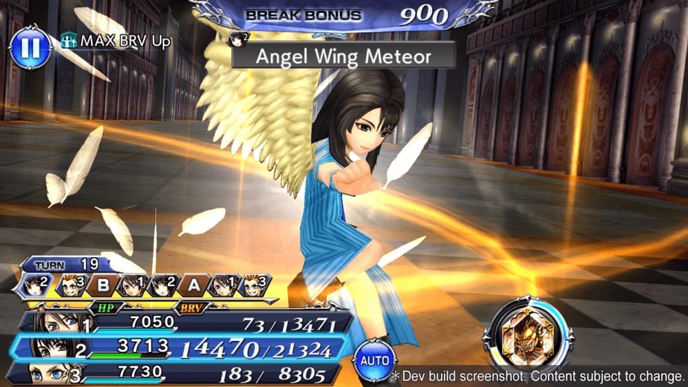 Ultimately, though, you’ll want to build up to Rinoa’s powerful Angel Wing status, which gives her serious BRV attack and HP attack boosts. Because these boosted versions consume her HP, you’ll want to use it in conjunction with Angelo Cannon.