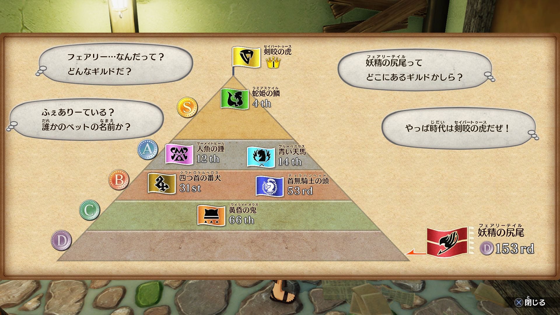 Guild rank will vary in line with fame, rising from D to S – the higher the rank, the more challenging the mission, but with that comes even bigger rewards. Rise the ranks to take on the most challenging missions in the courageous quest to become the greatest guild in Fiore.”