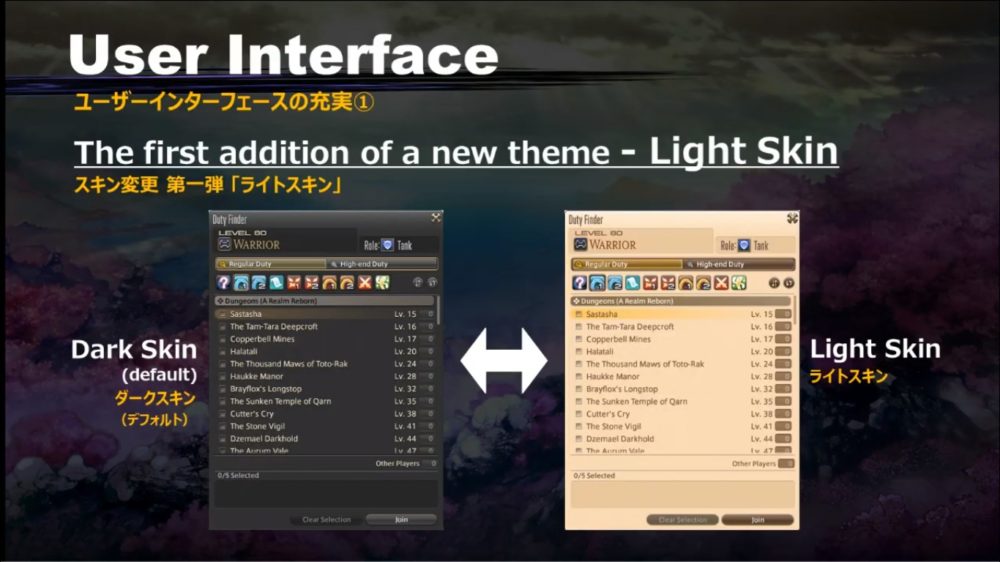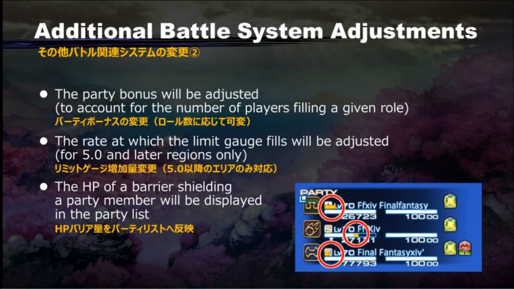 All UI elements will be expanded. Cross-world linkshells will get eight channels. Target information will be improved and will display decimal percentages. Party list information will also be improved, and a placement preview will be added to housing.