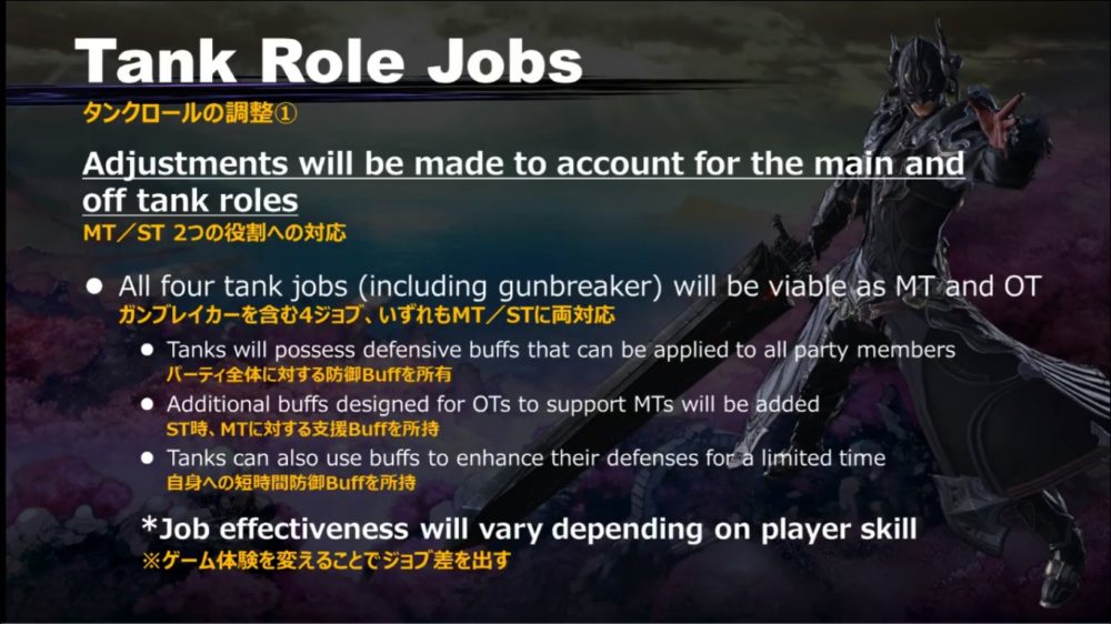Offensive stances will be completely removed, while tank stances will simply be an on/off toggle. Damage reductions and max HP increases will be removed. The tank stance will be basically only about generating more enmity. All actions in tank stance will generate enmity.