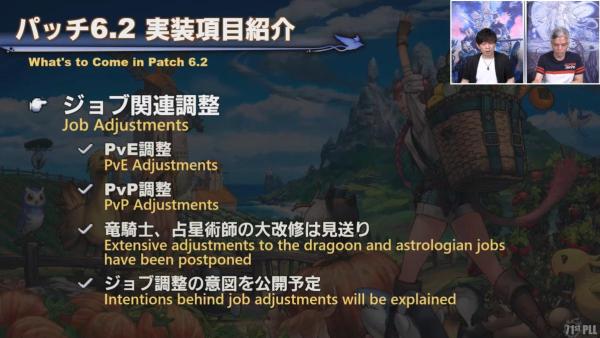 New job adjustments will include both PvE and PvP, alongside an attempt to improve the matching in Crystalline Conflict. The extensive changes promised for Dragoon and Astrologian have been delayed because more work than expected is required.