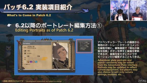You’ll be able to edit portraits and search comments from the Adventurer Plate interface. You’ll be able to create corresponding portraits for every gear set.