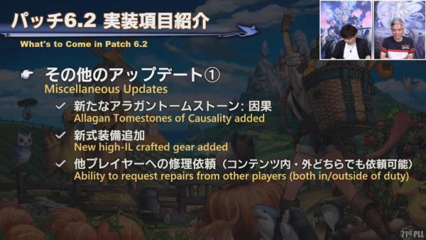 New Allagan Tomestones of Causality will be added alongside new high-Item Level crafted gear and the ability to request repairs from other players both inside and outside of duties.