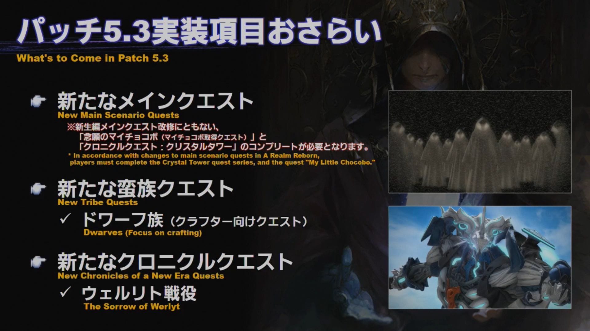 Producer and Director Naoki Yoshida and Global Community Producer Toshio Murouchi provided a lot of information about the upcoming update 5.3 (titled Reflections in Crystal) and the 5.3X series.