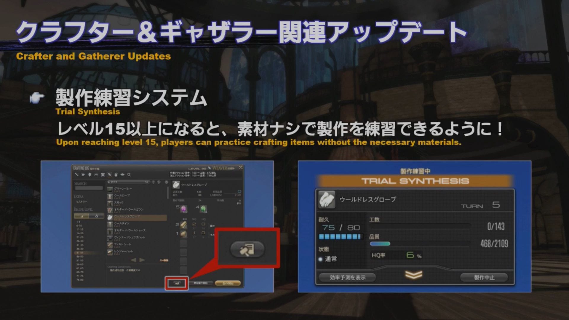 The gathering and crafting update will include a practice mode that won’t consume materials from level 15.