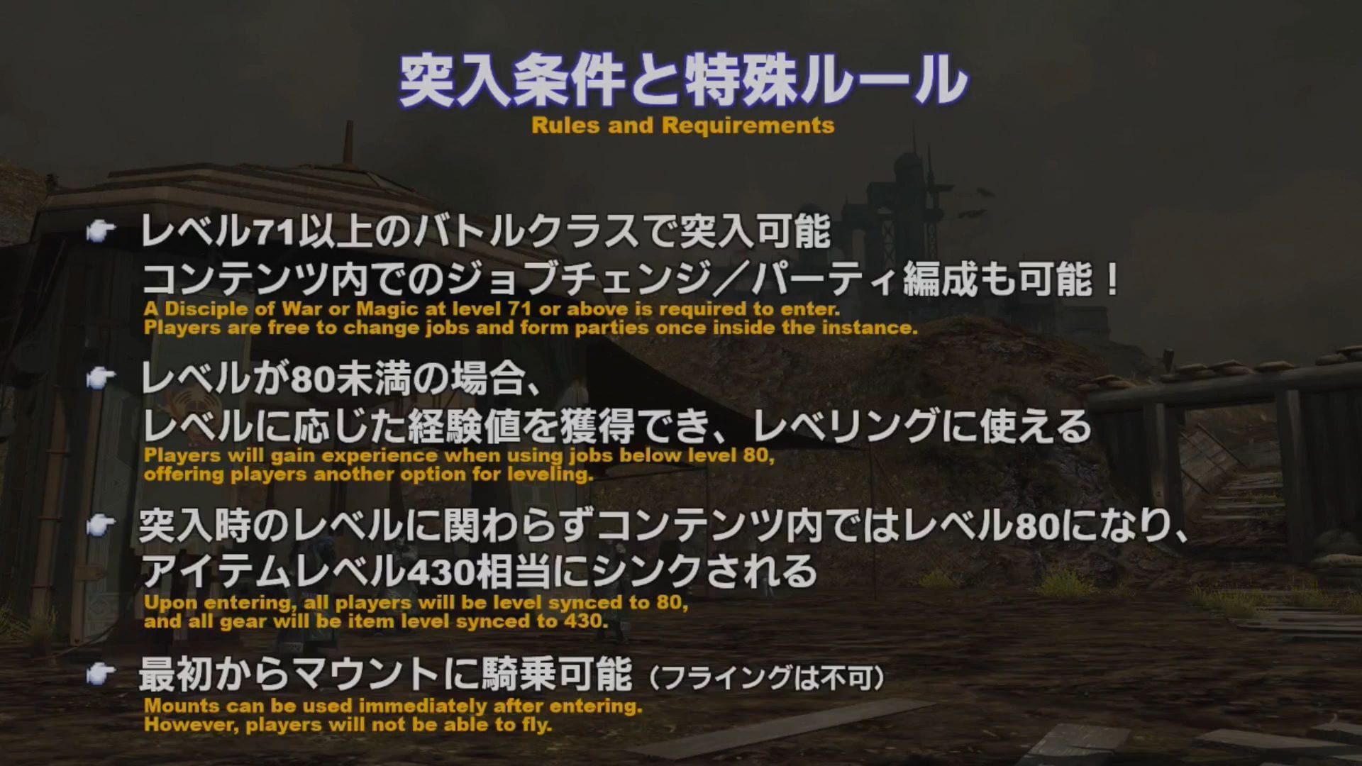 Everyone will be level synced to 80 and item level will be synced to 430. Mounts can be used immediately, but flight is not enabled.
