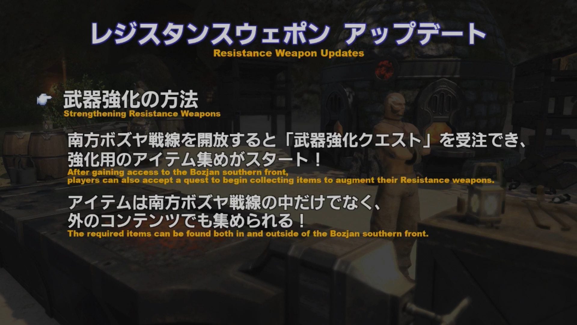 Of course, we’ll also get a chance to upgrade our relic weapons. Items required for the upgrade can be found both inside and outside the Bozjan Southern Front area. You’ll need both.