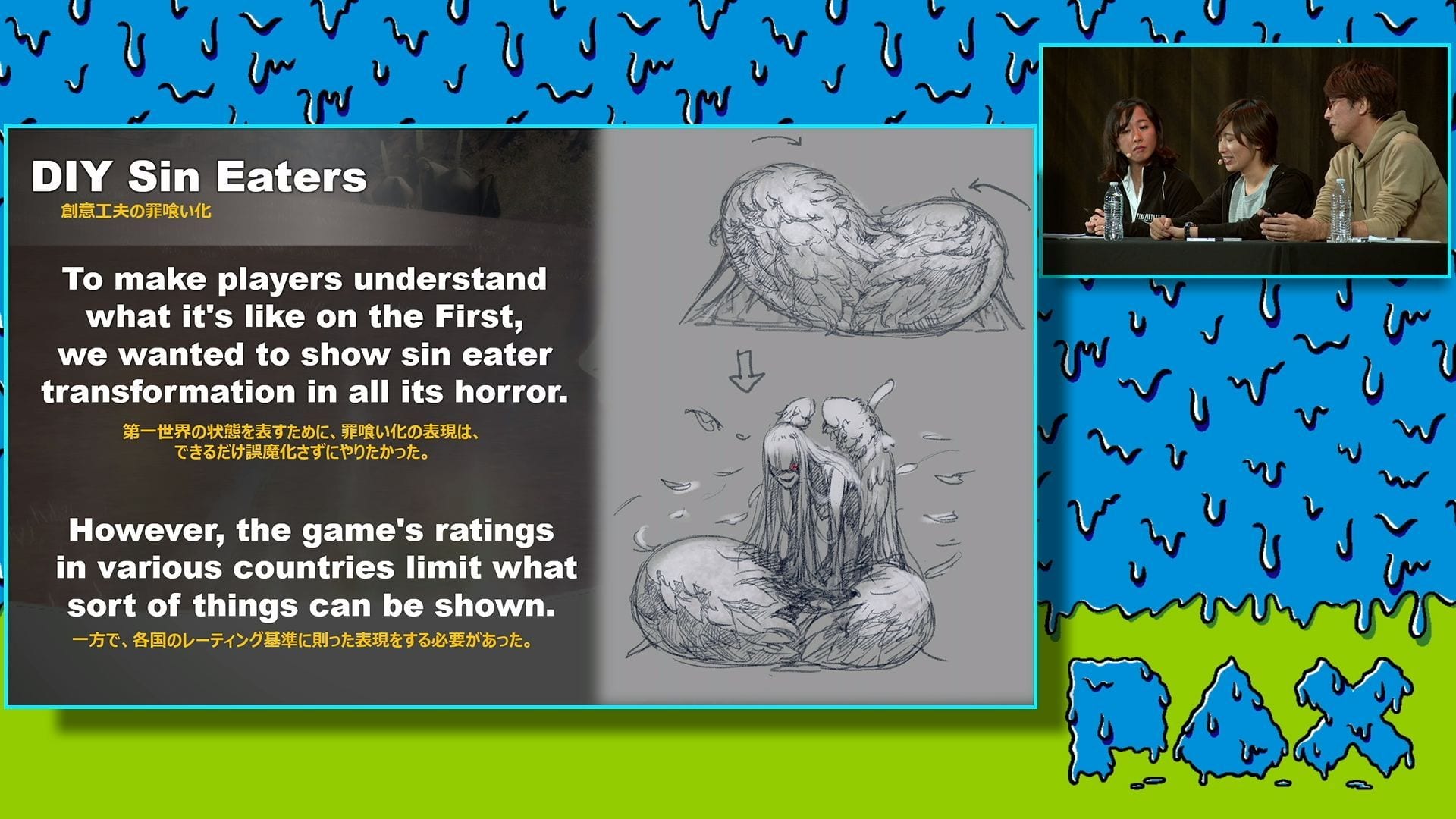 - To convey the situation on The First, the team wanted to show a scene in which a person turns into a Sin Eater in all its horror. Ratings in different regions limited what could be shown during that scene.