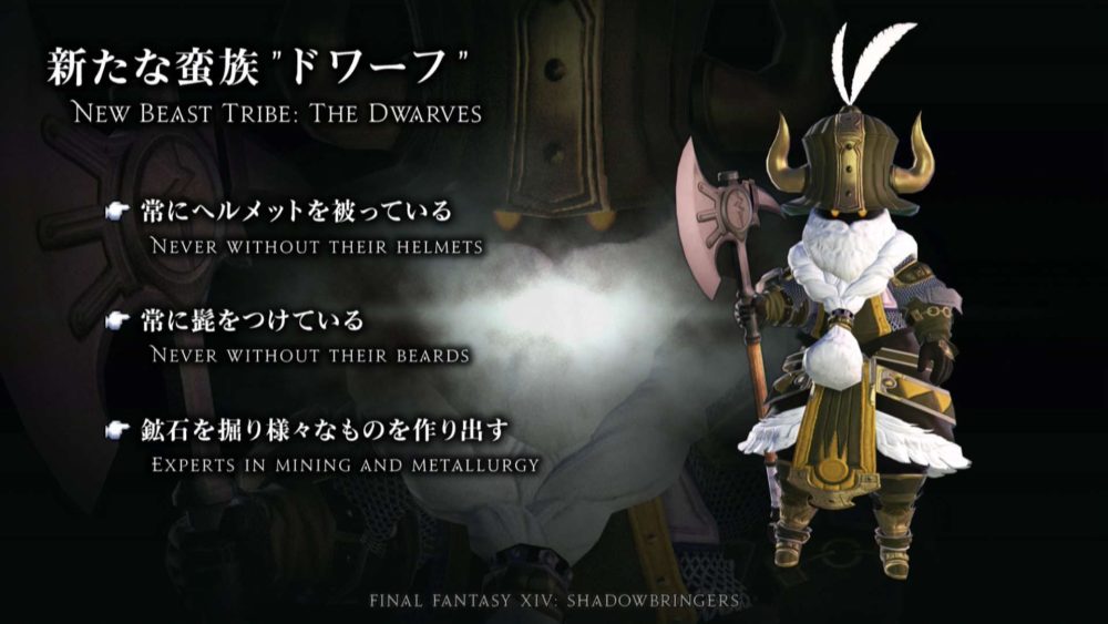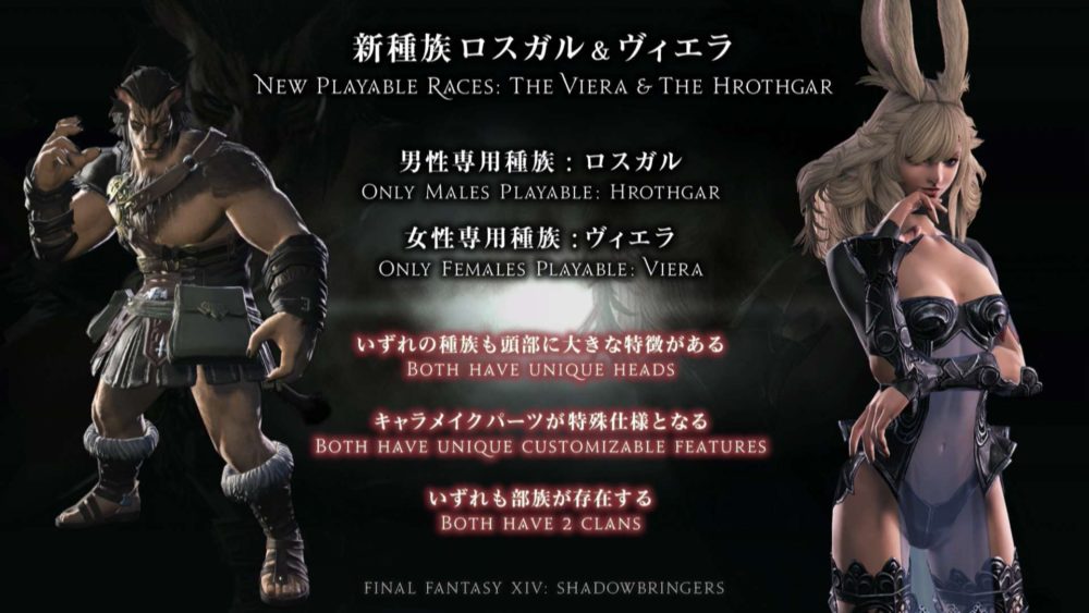 Since Viera will be only female for lore reasons, a male-only race is coming, and its name is Hrothgar. You can check them out below.
