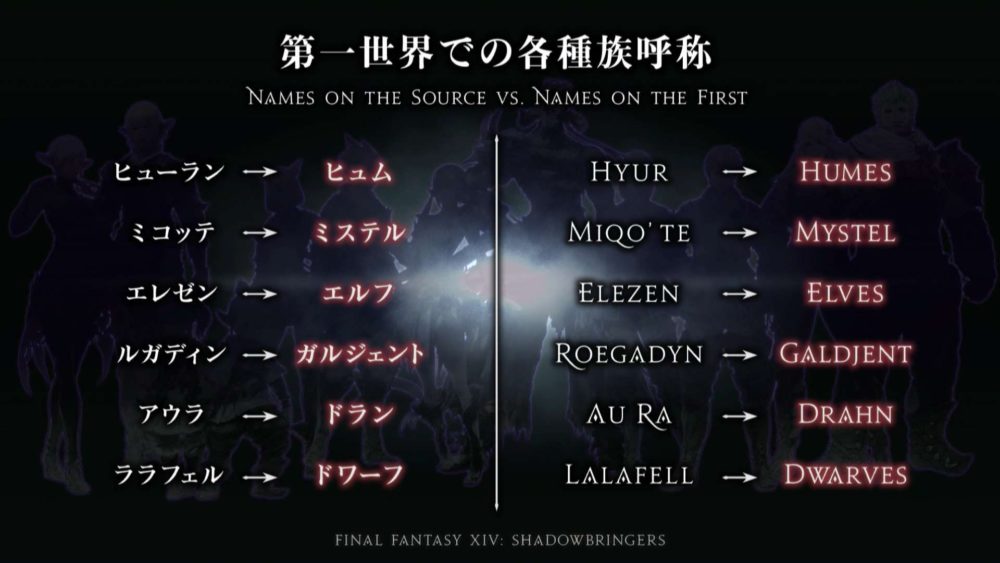We also get to see a handy diagram of the corresponding names for the races in The First.