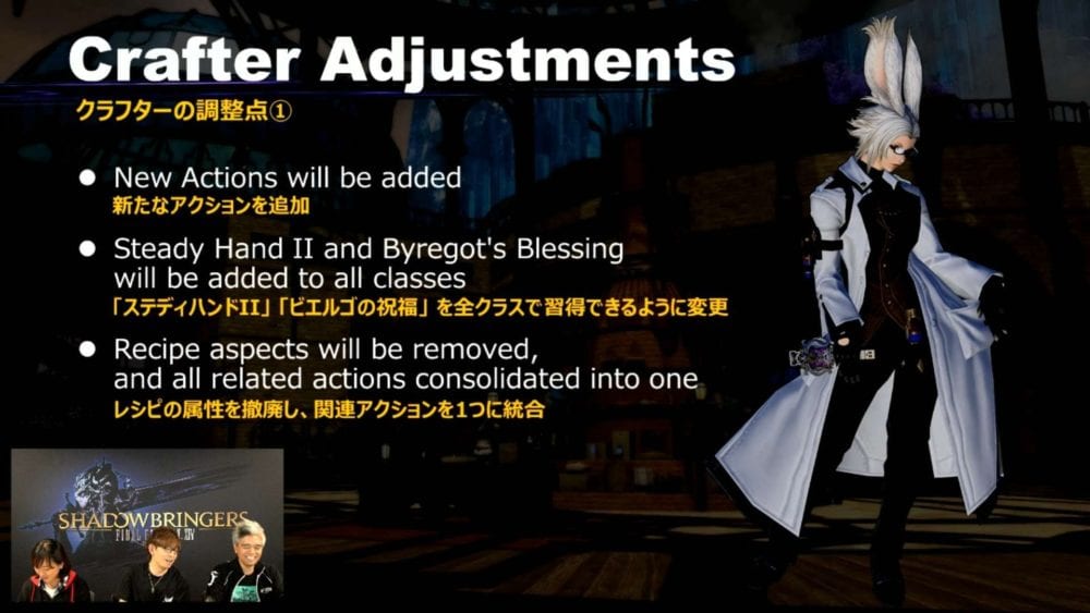 For crafters, Steady Hand II and Byregot’s Blessing will be added to all classes. Recipe aspects will also be removed.