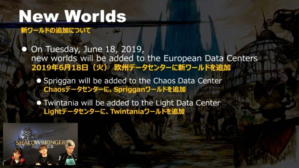 New servers will be added to the European Data Centers on June 18: the names are Spriggan and Twintania.